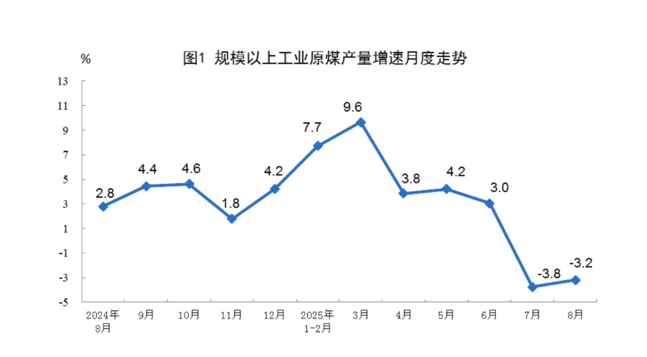 1—8月份,规上工业原煤产量31.7亿吨,同比增长2.8%。